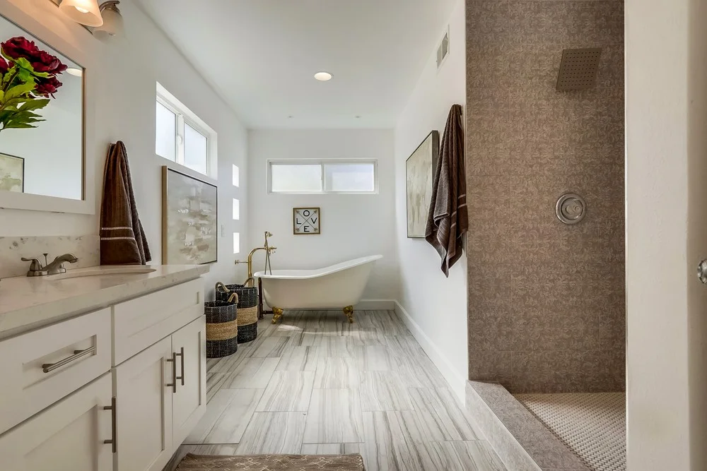 Craftsman home near the old-town city center? Sounds wonderful! We loved getting to work in such a unique and beautiful home setting. The house had been completely re-done and had some fabulous features to note (ahem, look at the incredible bathroom tiles and tub!). Indigo, rust, cream, woods, and a pop of metal took this house from simply lovely to absolutely stunning, and our furniture and accessories made this house a home. Bring in some buyers because this place will go quickly!