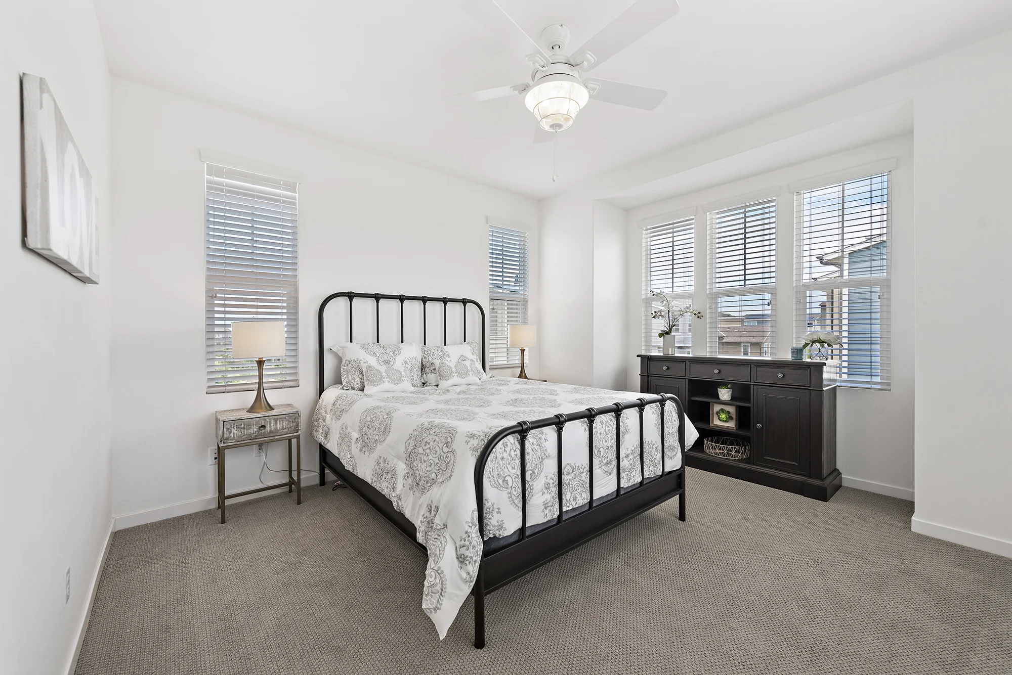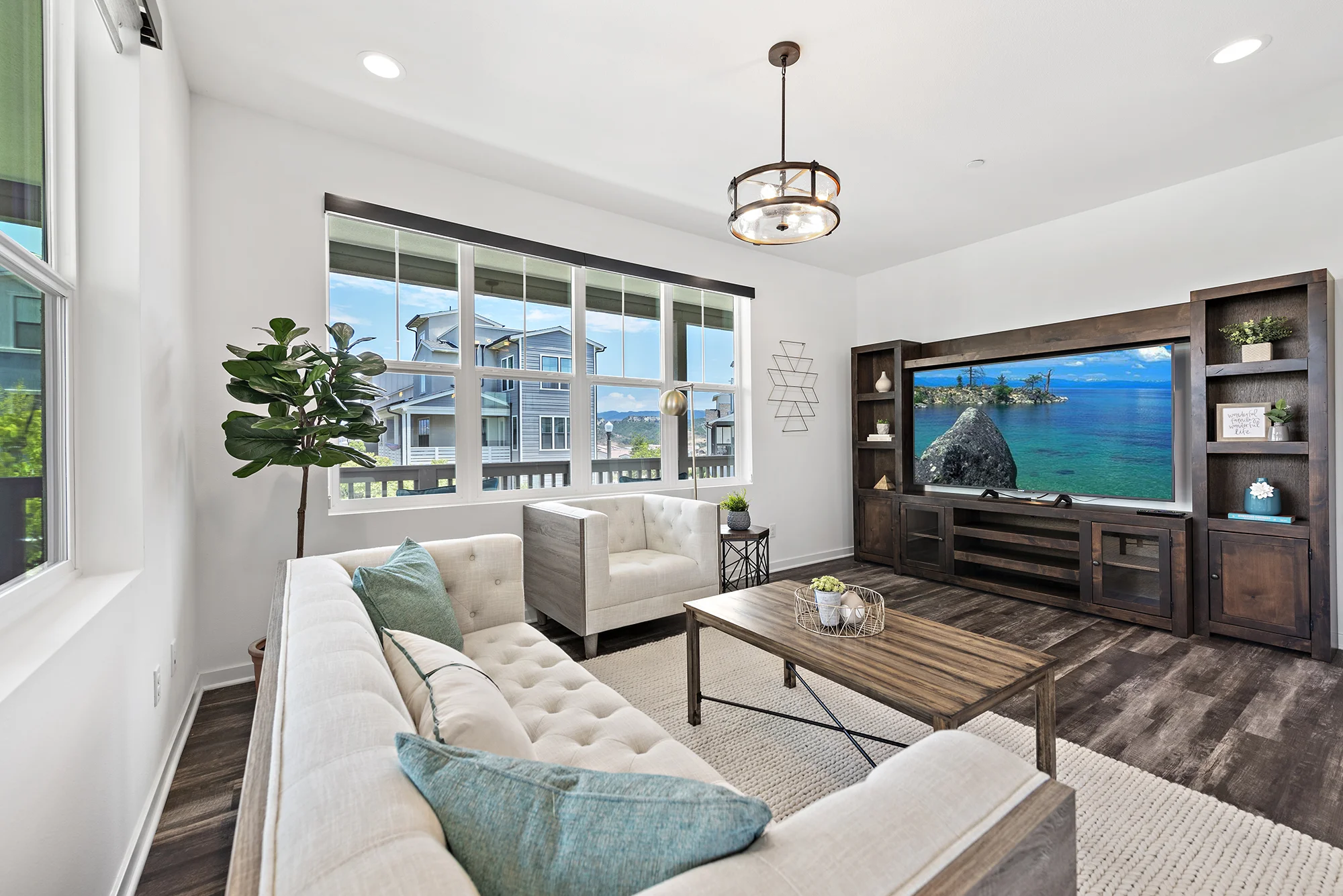 This home is the ultimate retreat in Orange County! From the front porch, to the second-story deck, to the fourth-story rooftop lounge, and all the rooms inside, this place has so many options for relaxation. We loved getting to bring in our items to make a beautiful space even more peaceful and tranquil. From the neutrals to the pops of teal, this gorgeous home was ready to sell… so much so that it sold after only one weekend of being on the market!