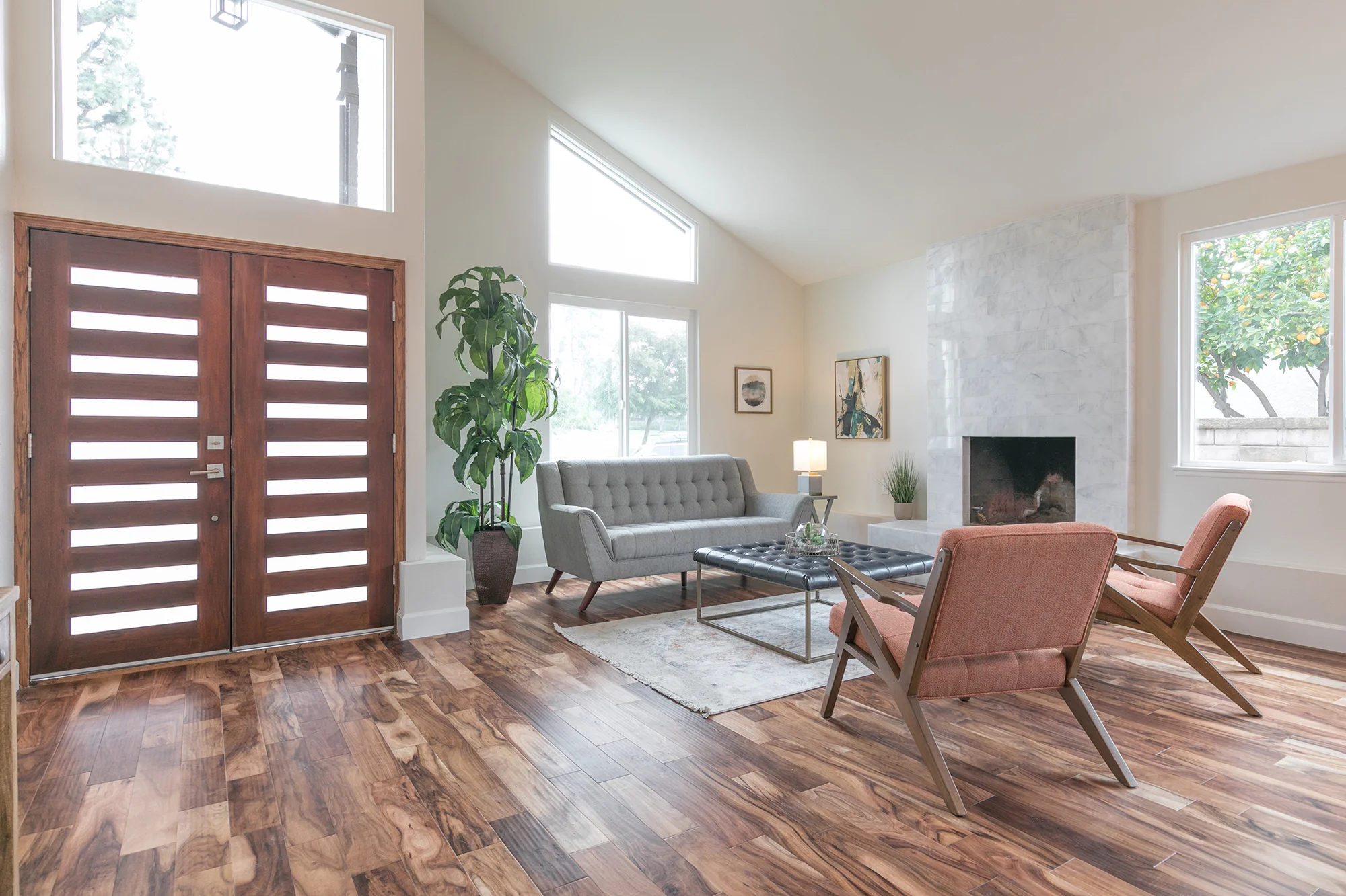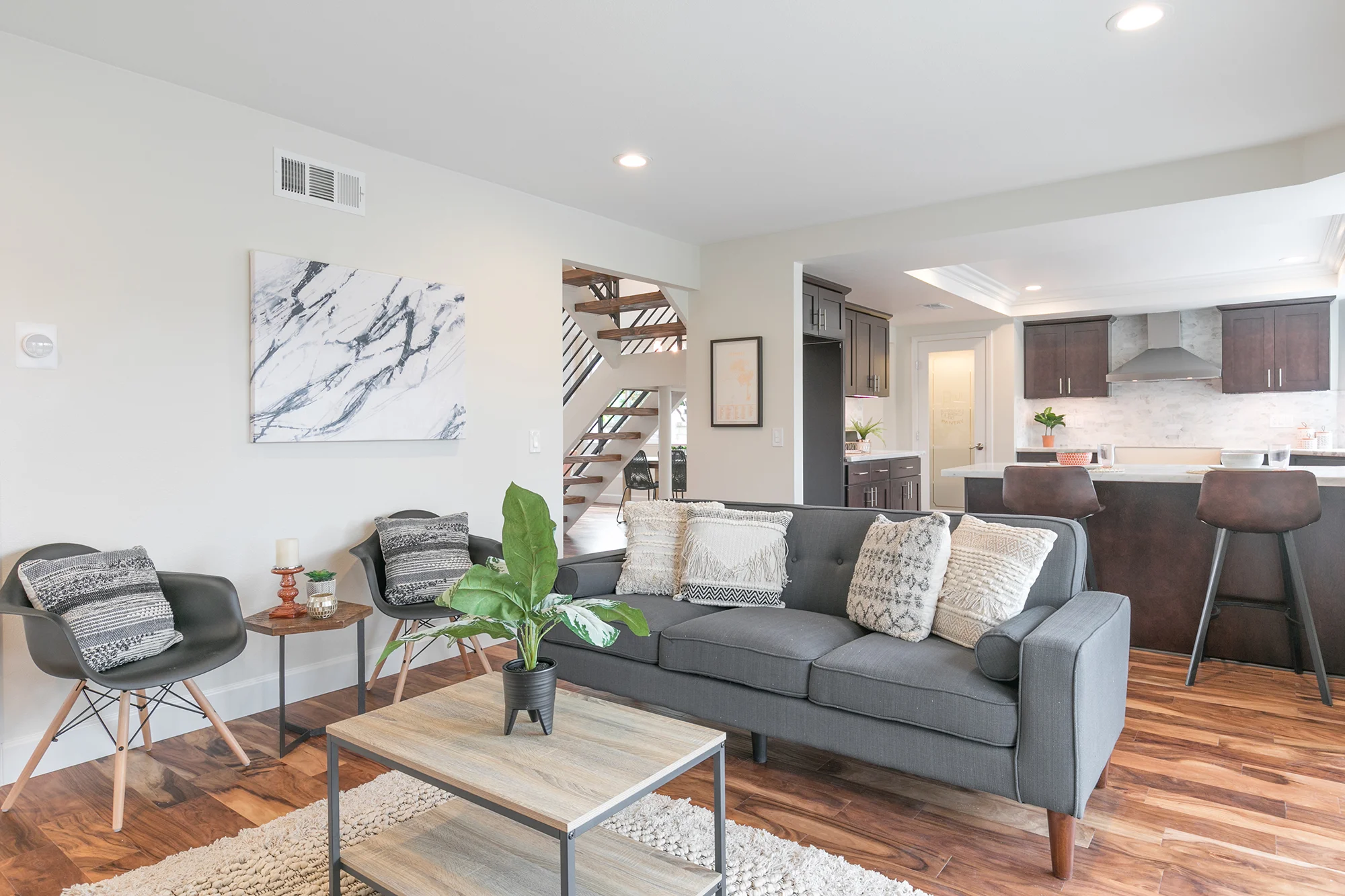 We walked into this house and knew exactly what we would do with it: MODERN FLAIR! The completely updated home had the most incredible new floors, new railing, new stairs, and two beautiful updated fireplaces, so we brought in our most gorgeous modern furniture to bring this already beautiful home to life!