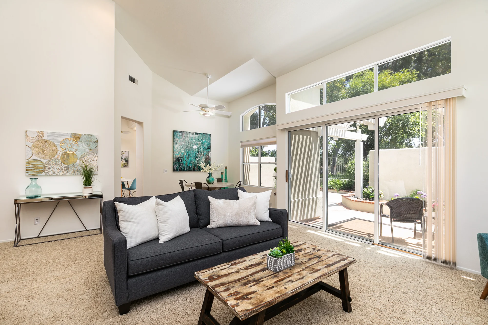 Nestled next to a golf course in Rancho Santa Margarita, this sweet home would be perfect for any couple or small family to relax and enjoy. We brought in pops of teal, some deep blues, and a few other neutral pieces to balance out the color scheme.